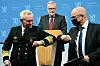 Forsvarsminister Odd Roger Enoksen (SP) fekk overrekt rapporten "Fokus 2022" frå sjefen for Etterretningstenesta Nls Andreas Stensønes. Bak står PST-sjef Hans Sverre SjølvoldFoto: Ola Gamst Sæther/Uniforum.