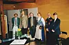 Doktoranden etter overstått disputas. Fra venstre: Professor Lars Hellan, NTNU, Professor Helge Jakhelln Dyvik, UiB, Professor David Lightfoot, U, of Georgetown, Doctor designata Kristin Melum Eide, Disputasleder og fungerende dekan Professor Wim van Dommelen, NTNU, og Professor Elisabeth Engdahl, U. i Göteborg.Foto: Privat.
