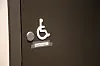 Det er ikke egne toalett på de ansattes område, så de må deles med studentene. Spesielt handicaptoalett har vært opptatt. Derfor har de sett seg nødt til å markere det for ansattes bruk.Foto: Benedikt Erikstad Javorovic