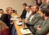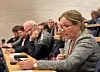 Mange er spente på hvilke innstramninger man har i vente i de nye forskriftene. Huitfeldt vil ikke si noe om når de kommer, bare at det jobbes med saken. Ingen vet hva som kommer. Kom hun til å gi noen signaler i dag? I auditoriet satt en NTNU-rektor, en NTNU-direktør, en Sintef-konsernsjef, dekaner, forskningsledere, studenter.