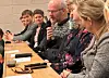 Utenriksministeren startet NTNU-dagen på Dragvoll, hvor hun som gjest ved HF- fakultetet fikk innblikk i pågående forrskning innen krig og fred, sikkerhets og Europapolitikk. Her fører instituttleder Karl Erik Haug ordet.Foto: Tore Oksholen