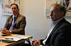 Armand Paul Alivisatos, Chad A. Mirkin, Robert S. Langer opplever at de har forskningsgrupper som er mer samarbeidende enn konkurrerende. - Det er ofte når du er på veldig smale felt, der det er mange andre grupper også at miljøet kan bli veldig konkurransepreget, sier Mirkin.Foto: Tore Oksholen