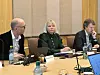 Rektor Tor Grande ( i midten) slo fast at 2026 blir året NTNU skal ned i aktivitet, og understreket at færre ansatte også må bety færre emner, samtidig som han forsikret styret om at det ikke planlegges videre nedbemanning nå.Foto: Tore Oksholen