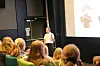 Guro Holm Skillingstad forteller om sin utdanning for studenter og elever fra Guri Kunna.Foto: Kamilla Østerberg