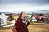 Line Vaarum er vokst opp med Marintek som nabo og blir berørt av det nye anlegget. Her står hun ved akebakken med navn Spruten, som går nedover mot Kong Øysteins veg.Foto: Espen Halvorsen Bjørgan