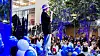 Da braker det løs. Sakte begynner prosesjonen å gå mot inngangen, som er dandert med blå NTNU-ballonger.
