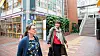 Sammen med Eileen Garmann Johnsen rusler hun bortover hovedgata på Dragvoll. Begge liker det de ser.