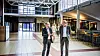 Instituttleder Dag Atle Lysne og rektor Gunnar Bovim i aulaen like innenfor inngangspartiet.KRISTOFFER FURBERG