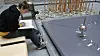 Dag etter dag denne uken har han sittet med falkeblikk og fulgt den evig svingende pendelen i kjelleren på Realfagsbygget. Ved siden av seg har han en liten hvit vekkerklokke med sekundviser, en gul post-it blokk og en blyant. Omtrent hvert tiende minutt, når svinger pendelen borti og velter en av pinnene i sirkelen, noterer han ned nøyaktig tidspunkt for når det skjer.