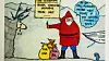 Global warming/ made its presence felt,/ when all the snow/ at the Poles did melt./ Santa was lost in thought/ as Boxing Day was near at hand. / Little kids would wait for him/ and gifts had to be carried to land./ He bought a yacht, a sturdy one,/ and laying his sled aside,/ prepared to sail out to land,/ come raging storm or high tide. /Red-nosed Rudolph/ saddened at heart,/ laid-off with tears in eyes,/ watched Santa depart.