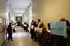 De oppmøtte samlet seg utenfor døren til rektoratets kontorer.Foto: Benedikt Erikstad Javorovic