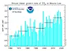 Figur 4. Årlig variasjon i økningen av CO2 ved Mauna Loa