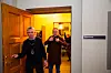 Organisasjonsdirektør Roar Tobro og Øyvind Eikrem på vei ut fra styremøtet der Eikrem inngikk en sluttavtale med NTNU.