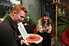 Utvekslingsstudentene Andrea Salvi og Lea Rosenberg er blant de som har tatt seg en liten pause fra eksamensperioden for å komme bort. De får snart et pinnedyr hver og spørsmål om hvordan de føler seg.