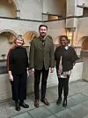 Daniel Johansen sammen med Kristin Bjørlykke fra Nidaros Domkirkes Restaureringsarbeider (t.v.) og Hanne Grimstveit, Innlandet fylkeskommune/NTNU.Foto: Eva H. Murvold.
