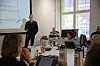 Prodekan Jon Magnussen ved Fakultet for medisin og helsevitenskap (MH) er prosjektleder for omstillingen ved fakultetet. Her fra en orientering for fakultetsstyret om omstillingen tidligere i år.