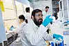 Førsteamanuensis Sulalit Bandyopadhyay studerer her en prøve med magnetiske nanopartikler som brukes i den nye testmetoden. Nå har han fått Forskningsrådets innovasjonspris sammen med sin kollega Magnar Bjørås. Foto: Geir Mogen/NTNUGeir Mogen