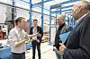 Gruppeleder Tore Børvik til venstre, under et besøk av Jorodd Asphjell, Eirik Sivertsen, Espen Barth Eide (alle Ap) i 2021. Bak står Tor Grande, den gang prorektor for forskning. Bildet er tatt i ballistisk lab.Foto: Sølvi W. Normannsen, SFI CASA