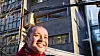 En strålende fornøyd Emre Yaksi fulgte nøye med da antivibrasjonsbordet (i bakgrunn) ble heist inn vindusåpningen i tredje etasje på Kavli-instituttet.KRISTOFFER FURBERG