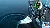 Her tar Lone Jevne vannprøver utenfor en laksemerd for å telle lus som ennå ikke har festet seg på laksen.John Birger Stav