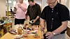 Først mat, så hjerneføde. Tore Saanum, i forgrunnen, og kollegene Henrik Schultz og Gunnar Dalsnes forsyner seg fra dagens lunsjbord.Solveig Mikkelsen