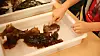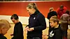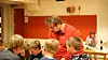 Vaagland hjelper en elev med å plukke opp en krabbe som har falt på gulvet.