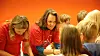 Vaagland og Evertsen er travel med å svare på alt som elevene har å spørre og fortelle om. Opplegget deres ser ut til å være en suksess.