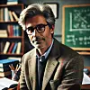 KI-versjonen av en professor: Prompt: Lag et bilde av en typisk professor. ChatGPTs ledsagende beskrivelse: «Her er et bilde av en typisk professor i et akademisk miljø. Han har det klassiske utseendet med grått hår, briller og en tweedjakke med albuelapper, omgitt av bøker og akademiske tekster.» - Vi har glemt hva som er poenget med en professor, mener professoren bak denne ytringen.