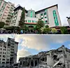The UCAS campus befor and after Israeli demolitions.Photos: Mohammad Almasri