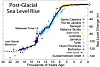 Vi kan også se at fra 15 000 til 14 000 år siden steg havet mest, hele 30 meter på 1000 år, som er 30 mm pr år over tusen år. Det må i det minste ha blitt observert av folkene som bodde ved havet. Vi vet at Doggerbank ble oversvømt for flere tusen år siden da det var bebodd. Men havnivåstigning har ingen fare heftet ved seg i forhold til tsunamier og tropiske stormer.