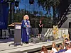Dekan Monica Rolfsen erstattet prorektor Marit Reitan som en av talerne, etter hun måtte utebli på grunn av sykdom.Foto: Benedikt Erikstad Javorovic