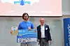 Hermann Schips fra Kelpinor mottok prisen for beste forretningsidé. Her sammen med Jan-Frode Janson, konsernsjef i SpareBank 1 SMN.Foto: Nicole Monavari