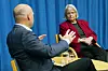Tidlegare Ap-leiar og Noregs første kvinnelege statsminister, Gro Harlem Brundtland, blei intervjua av historieprofessor Einar Lie.Foto: Ola Gamst Sæther