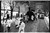 UKE-toget har som tradisjon å kulminere på Torget. Her den 9. september 1957, da UKE-revyen hett «Krussedull».Foto: foto.samfundet.no/NTNU Universitetsbiblioteket