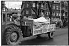 Uketoget 25. oktober 1951. Dette året hett UKE-revyen «Akk-a-mei», og de var veldig opptatt av tekniske finesser. Man tok blant annet i bruk flyveblad som ble kastet ut fra fly over Trondheim som en del av «blæstingen». Kanskje det var derfor de hadde en flyvende tallerken i UKE-toget?Foto: foto.samfundet.no/NTNU Universitetsbiblioteket