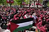 Over hele USA har studenter og ansatte ved universiteter protestert mot Israels krigføring i Gaza og USAs støtte til denne, som her ved Harvard-universitetet i mai i fjor.
