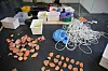 På veggen skal det brukast både nye og brukte tak. Dei har fått fleire kassar med brukte tak frå den gamle klatreveggen på Dragvoll. - Det er mykje spennande å finne her, seier Jordhøy.Foto: Liva Rindom Tofte