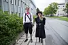 TRONDHEIM: Ny student Miriam Sarpong er godt fornøyd med mottakelsen hun har fått av fadder Emily Malcolmson. Her står de og venter på at immatrikuleringssermonien skal starte.Foto: Kamilla Østerberg