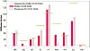 Grønn strek er hvor mye fakultetet hadde med inn i årsregnskapet av oppsparte midler. Mørk rosa søyle er hvordan de ligger an i år, mens skravert søyle er fakultetenes prognose for hvor de ender ved årsslutt.Grafikk: Kaia Sørland