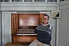 Erling With Aasgård sit godt på benken framfor orgelet i Olavshallen. Han har ei lang karriere bak seg, og har blant anna spelt i Filharmoniens store sal i St. Petersburg.Foto: Magnus Vattekar Sandvoll.