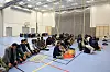 Etter mat er det tid for solnedgangsbønnen, Salat Maghrib. I gymsalen på Blussuvoll skole legges bønnemattene ut av de som har det.