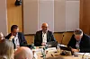 Styreleder Remi Eriksen, rektor Tor Grande og direktør for organisasjon og infrastruktur Bjørn Haugstad. Sistnevnte forsikrer om at NTNUs ledere gir tydelig beskjed om universitetets bekymringer for framtidsutsiktene.Foto: Benedikt Erikstad Javorovic