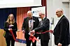 Billedteksten som fulgte med dette bildet innledes med: «Høytidlig snorklipping». Daværenmde viserektor ved NTNU i Gjøvik, Jørn Wroldsen, klipper, med dekan Monica Rolfsen og prodekan Asbjørn Rolstadås (t.h.) som entusiastiske båndholdere, mens instituttleder Torbjørn Skogsrød holder i sin saks. Anledningen var at et nytt senter ble åpnet ved NTNU Gjøvik.