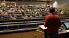 Rektor Per Halse ved Høgskolen i Volda talte under et allmøte om fremtidig struktur i UH-sektoren på høgskolen 18. august.Høgskolen i Volda