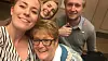 Fornøyd NSO-leder Therese Eia Lerøen tar selfie med NSOs Jørgen RIngen Andersen, Venstres Trine Skei Grande og Iselin Nybø etter budsjettforliket mandag kveld.
