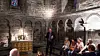 Sammen med kollega Aslak Røstad, universitetslektor og doktor i gresk, har han tatt med seg de ferske klassiskstudentene til orienteringsmøte i Nidarosdomen. Her er det eldste gjenværende undervisningslokale i Trondheim og Norge. På 1100-tallet ble nemlig kommende prester undervist i latin inne i katedralen.