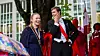 Rektor Gunnar Bovim treffer Taibeh Abbasi under immatrikuleringen, og ønsker henne velkommen.