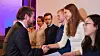 Kunnskapsminister Torbjørn Røe Isaksen delte ut prisene til de sju beste i Abelkonkurransen. Her får vinneren sin sjekk og gratulasjon.