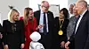 Fint besøk da AI-laben ble åpnet på kvinnedagen: Fra venstre Monica Mæland, Linda Hofstad Helleland, Gunnar Bovim, Letizia Jaccheri, Alexandra Bech Gjørv og Sigve Brekke. I forgrunnen NTNUs sosiale robot Pepper.Tore Oksholen