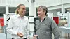 Seksjonsleder Terje Stafseng (t.v.) og instituttleder Casper Boks ved avgangsutstillingen for mediedesignstudenter i Gjøvik.